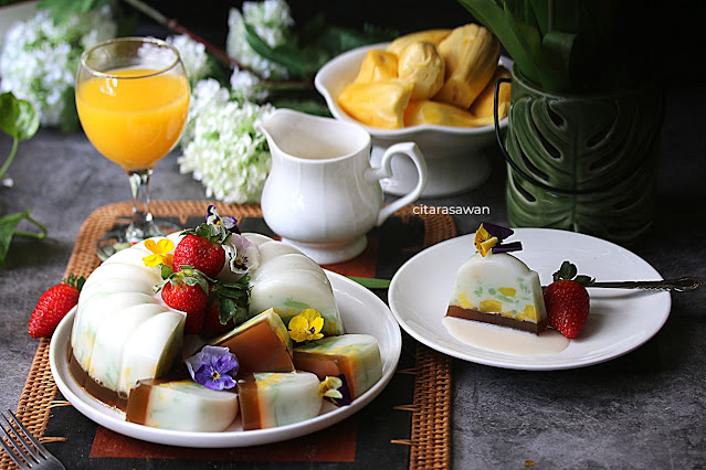 Masak jus bunga telang, gula dan agar-agar hingga mendidih.